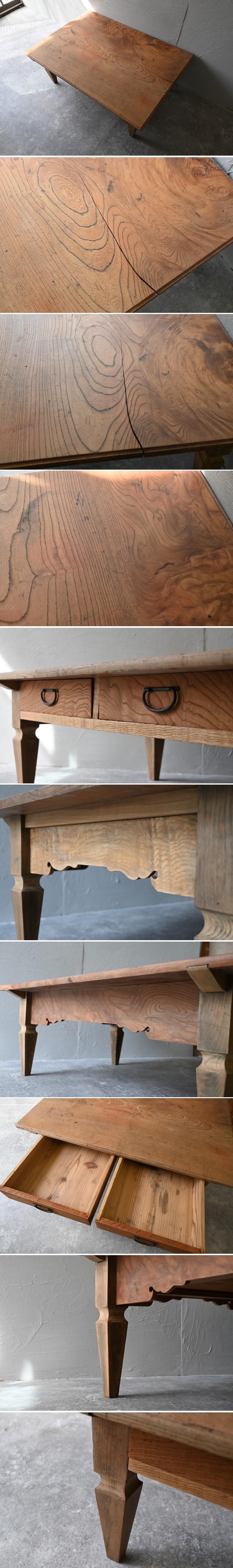 古い欅材の飾り台テーブル アンティークアトリエ飾り台陳列台作業台デスク店舗什器 收藏