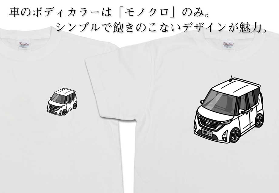 車のボディカラーは「モノクロ」のみ。シンプルで飽きのこないデザインが魅力。クールなモノトーンのコーデでお洒落な大人の雰囲気を醸し出します。Tシャツデザインのベースは2種類。【ノーマル/ワンポイント】をラインナップ。Tシャツ以外にも、キーホルダーやスマホケース、クッションなども同シリーズでラインナップしています。【すべて受注生産です】 |