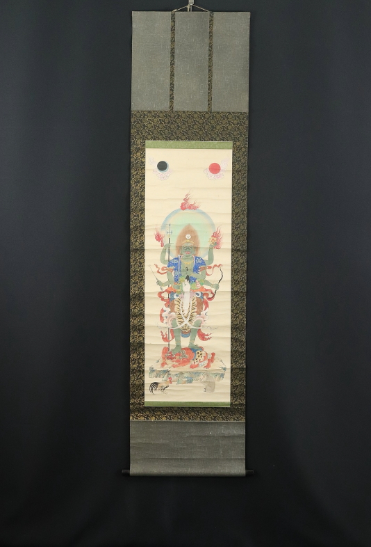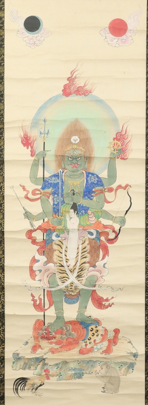 11219■【真作】 「青面金剛図」 肉筆 仏画 神仏習合 仏教 掛軸 收藏