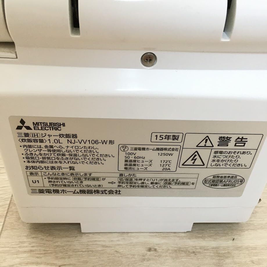 【AJ】三菱電機 NJ-VV106-W IHジャー炊飯器 備長炭炭炊釜 5.5合炊き ピュアホワイト 1008-4000-7980-0-ka-5012 收藏