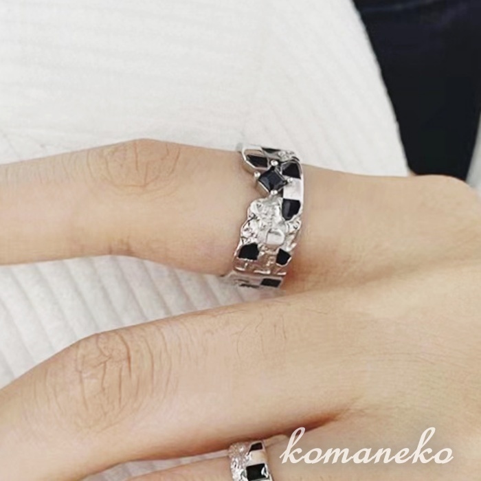 A709 指輪 レディース メンズ リング チェッカーフラッグ 市松模様 オニキス s925 フリーサイズ サイズ調節可能 收藏