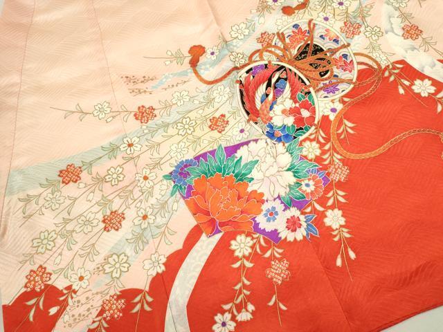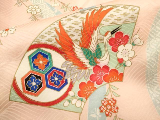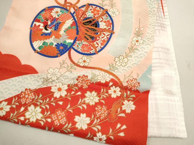 平和屋着物[]お宮参り 女の子 祝着 産着 初着 のしめ 鼓 地紙飛鶴花文 金彩 逸品 CAAR6677ze 收藏