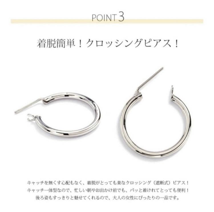 ピアス ステンレス ホワイトゴールド色 フープピアス リング 輪 20mm 普段使い 金属アレルギー対応 メンズ レディース ギフト 收藏