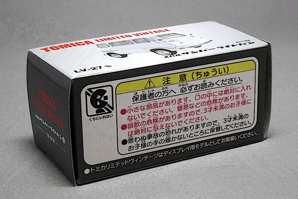 | トミカリミテッドヴィンテージ LV-27b スバル サンバー ライトバン(水色) 未開封、未使用品。製造時からの塗装の不出来やタンポの欠けなど製造上の個体差、箱の初期擦れシワ、折れ、傷、汚れ等の傷みなどがある場合がありますので予めご了承下さい。写真では分りづらいキズ等がある場合もあります。ご理解の程宜しくお願い致します。 | |||