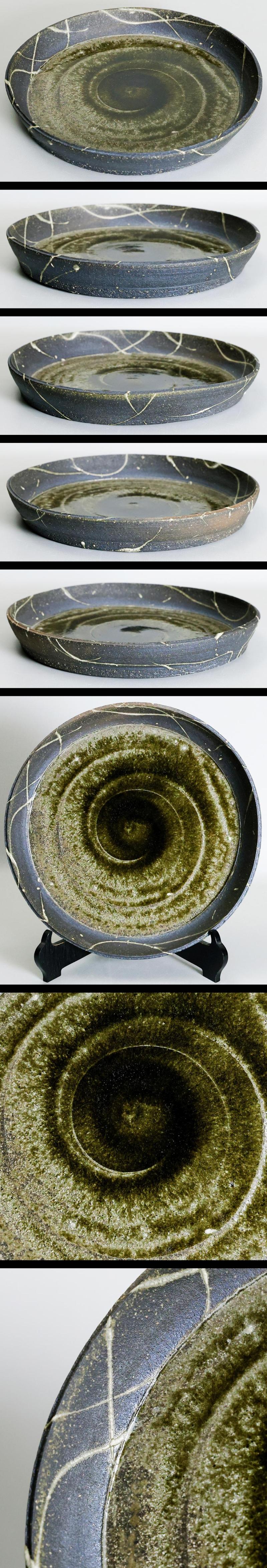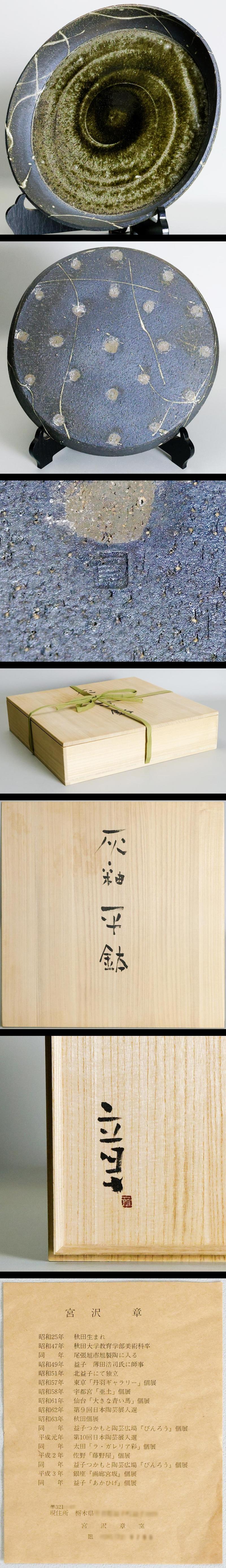 【真作】【WISH】宮沢章「灰釉平鉢」 大型作品 益子焼 共箱 3.96kg 〇陶芸家 日本陶芸展 秋田県出身 #25106008 收藏