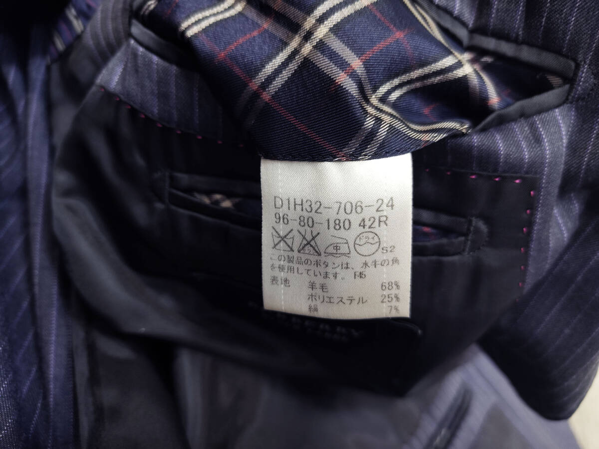 【美品】バーバリー ブラックレーベル 本切羽 シルク混 微光沢グレーストライプ柄 スーツ 96-80-180 42R (XLサイズ) BURBERRY BLACK LABEL 收藏