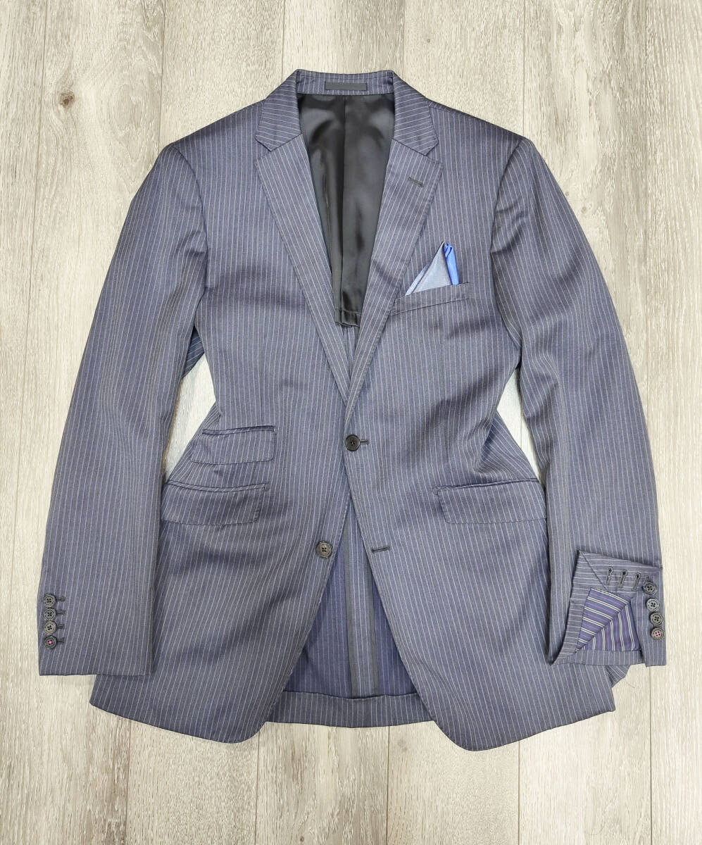 | 【美品】バーバリー ブラックレーベル 本切羽 シルク混 微光沢グレーストライプ柄 スーツ 96-80-180 42R (XLサイズ) BURBERRY BLACK LABEL ★☆★☆ あなたに寄り添う良品専門店へようこそ! ☆★☆★ 傷や汚れは無くても肘やお尻がテカったスーツってどう思います? 全てを程度の良い選別品で揃えられるのは全国でも弊社だけ! おかげさまでリピート率3割超えの高い信頼を頂いております 2点以上で送料無料! 各種クーポンは[まとめて取引]の合計金額に適応出来るのでご活用下さい スピード発送(ヤマト運輸営業所から即日出荷!) 落札後に決済 ⇒ 月曜日発送 ⇒ 火曜日到着(一部地域は+1日) 匿名発送(おてがる配送宅急便)だからプライベートも安心 受渡しも色々 サイン不要の非対面[置き配]で不在時も対応 さらにコンビニや営業所で受け取りも可能(クロネコメンバーズと連携必) ご入札は商品説明及び以下の項目をご確認頂いた上、入札操作も慎重にお願いします ■商品の程度 擦れやテカリの無い美品です(クリーニング済みで即着用可) ■商品の特徴 バーバリーブラックレーベルのグレーストライプ柄スーツ こちらは後期モデルから投入された少し青みが入ったシルク混で上品な 微光沢グレーネイビーカラーで御座います 背抜きですが、生地には厚みがあり寒暖差のある今の季節に最適です 大きいサイズの少ないブランドですので是非この機会にいかがでしょうか? ■メーカー:BURBERRY BLACK LABEL (株)三陽商会 ■色柄:グレー系(ストライプ柄) ■表地:ウール68% ポリエステル25% シルク7% 裏地:ポリエステル キュプラ 他 ■厚薄:厚 ---●--- 薄 ■季節:合物(背抜きです) 春秋に最適◎ 冬は△ 夏場は〇 ■タグ:96-80-180 42R (XLサイズ) ■実寸 ジャケット 肩幅 約45cm 身幅 約51cm 着丈 約76cm 袖丈 約64cm パンツ 胴囲 約85cm (+5cm 最大約90cmまで広げれます) 股上 約27cm 股下 約80cm (+9cm 最長約89cmまで伸ばせます) 渡幅 約34cm 裾幅 約20.5cm 総丈 約105cm ■採寸位置 肩幅(肩⇔肩の直線)/身幅(脇下の片幅)/着丈(後襟下~裾)/袖丈(肩~袖先) 胴囲(内周測り)股上(前部分~股の繋ぎ目)/股下(股の付根[十字部分]~裾) 渡幅(股の付根位置での片幅)/裾幅(裾の片幅)/総丈(前身頃の帯位~裾先) ※採寸位置は各部位の縫目・繋目 (幅)=平置き直線距離 ×2で囲(筒)です ※(胴囲=ウエスト)はパンツの入り口(帯部分)ベルト位置を指します ※裾を伸ばせる寸法はシングル仕上げでヘム(返し)を約2cm残しの想定です ※ウエスト・股下などのお直しは購入後ご自身でお願いします ※タグサイズと商品の実寸が違うのは当然です。スーツを購入したら裾上げを するようにウエスト調整したり袖丈を変更する場合もあるので、ご検討の際は 上記採寸(実寸)表を優先し、お手持ちのスーツや衣類と比較してご検討下さい ■季節表記と裏地の種類 背抜きは春夏の4~10月頃/半裏は盛夏の7~9月頃/総裏は秋冬の10~4月頃 着用時期(シーズン)は本州主要都市の気候を元に説明させて頂いてます お住いの地域や気候により異なります事、ご理解をお願いします ※厚薄 生地に厚み表記は参考程度の目安とお考えください ※半裏は背抜きを更に前身頃の裏地を省き夏用に軽くて通気性を高めたものです ■備考・その他 販売はスーツの上下またはジレ(ベスト)がセットのスリーピースで撮影備品の シャツ/ネクタイ/ハンカチ/ハンガー等の撮影小物は付属しておりません ベントや裾仕上げなどは其々商品画像にてご確認頂けます   安心安全宣言!!良いものだけをお届け致します! 原則はお客さまファースト!ネット商品最大の不安を軽減! その① 取扱う商品を程度の良い選別品のみに絞る事で品質への不安を軽減 その② 神経質な方も安心、クリーニングしてから販売(綿素材は除く) その③ 偽物・詐欺のリスク無し 返品保証有り その④ 専門店として、商品への豊富な知識と経験による商品説明 その⑤ 専用箱をご用意、丁寧に梱包して更に即日スピード発送! その⑥ アフターも完璧 メンテナンスから着こなしの相談まで幅広く対応 テカリはスーツの寿命です! テカリのあるスーツは買取時に値段が付きません 車で例えるなら多走行で使用感 も酷くルーズで不衛生と本来の役目を果たせないからです。 古着市場でも捨値なこれを質より値段で仕入れフリマやオークションで売られ被害 が出ているようです、特に悪質なのがそんな粗悪品や破損した状態でも[未使用級] と称して売られているので、入札前には評価の確認を忘れず行いましょう。 [未使用]か[未使用級]とノークレームノーリターンがセットであれば確信犯です 弊社ではお客さまの安全のため[新品同様]は全て返品保証付きで販売させて頂てま すのでご安心ください。「騙されるのはもう懲り懲りだ!まともな出品者は居ない のか?」とそんな方にお勧めで御座います。程度の良い選別品だけを販売し、説明 はしっかり、嘘や誇張は無く中には返品保証も付けたお品もあり自信をもって販売 させて頂いてます そして全商品クリーニングしてから販売※(一部除外:注意事項⑤を参照)
