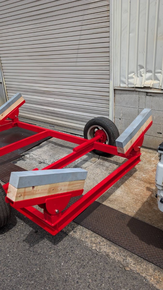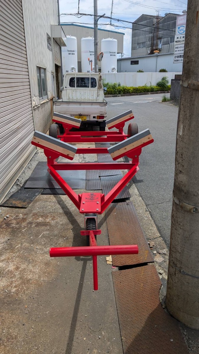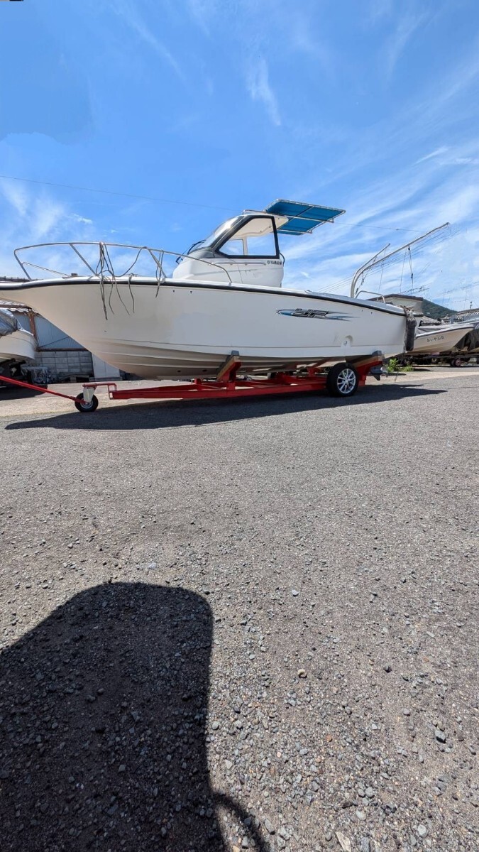 1年ほど前に特注で25万で製作してもらいましたが、保管場所が諸事情で係留になる為出品する事にしました。荷重がかかる後ろのタイヤは車用でアルミホイールになっています。勿論、海に漬けたことも無く船使用後は毎回水洗いを念入りにに行なっておりました。寸法は測ってませんが画像の通りYF21の船台として使用しており、ちなみに船長6.45M船幅は2.25Mです。重心が下になる様に出来るだけ低く設計されており、前輪に付いている棒で引っ張って移動していました。前輪のホイールは赤色です。サイズ感が分かるように一部YF21が写ってますが、船台のみでYF21は含まれてませんのでご注意下さい。引き取り限定でお願いします。