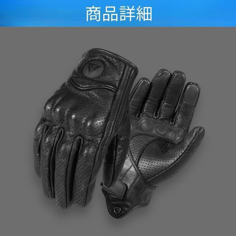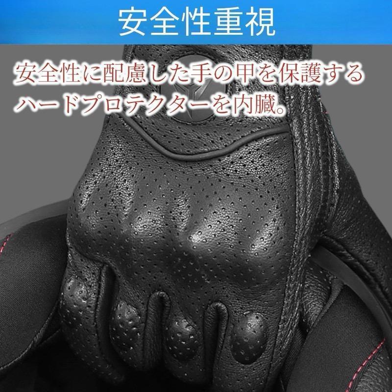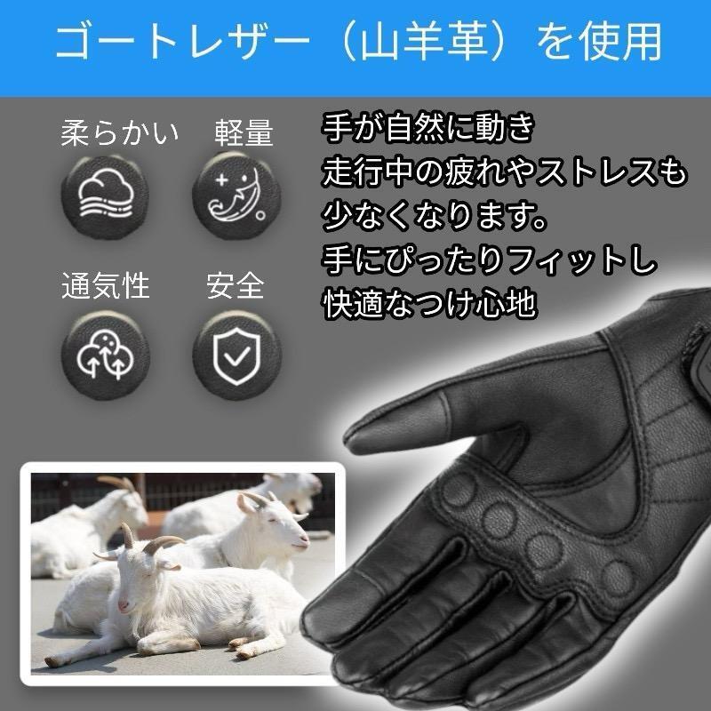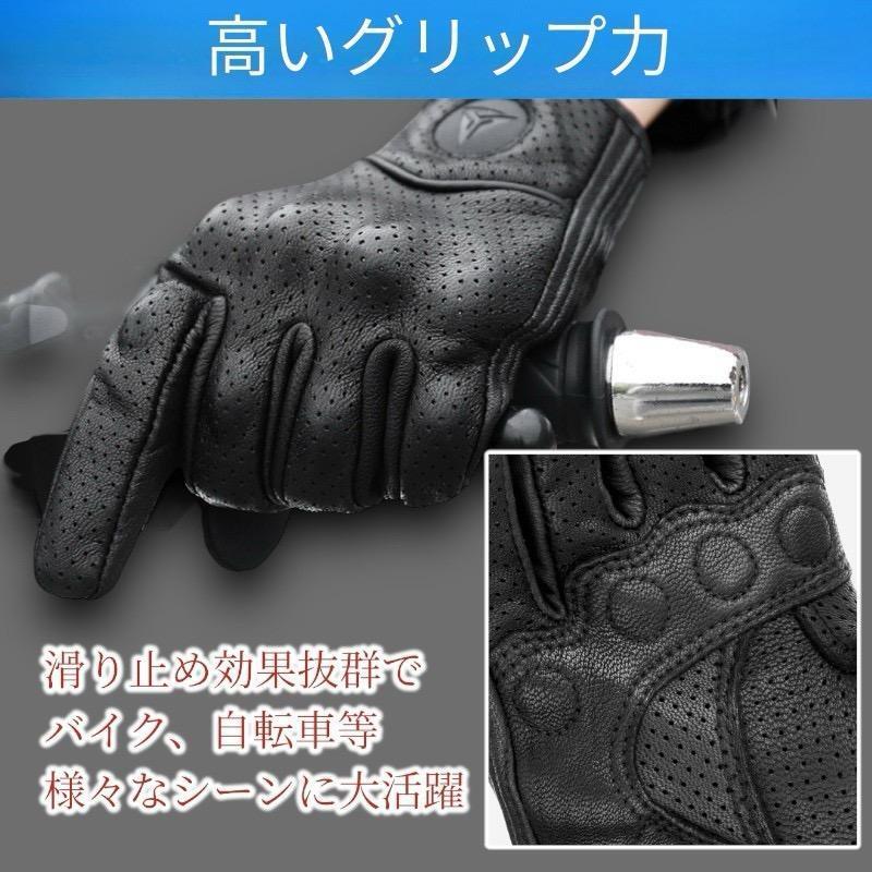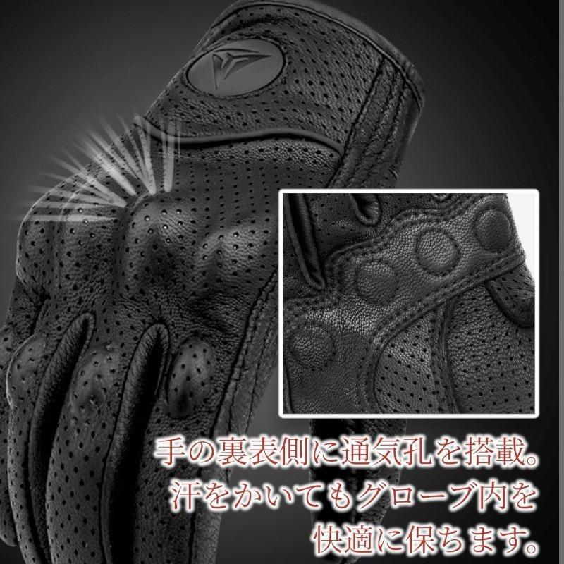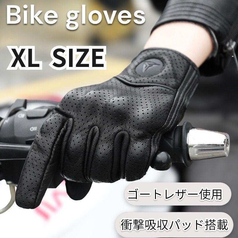 バイクグローブ XL ゴートレザー 山羊革 メッシュ 黒 ブラック 夏 衝撃吸収 通気性 滑り止め タッチパネル対応 バイク 自転車 F03 收藏