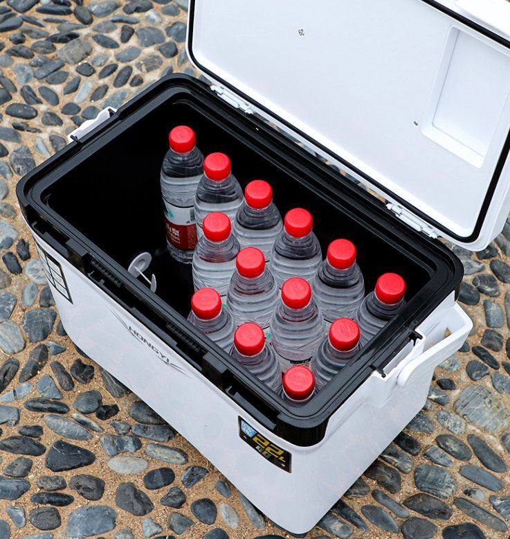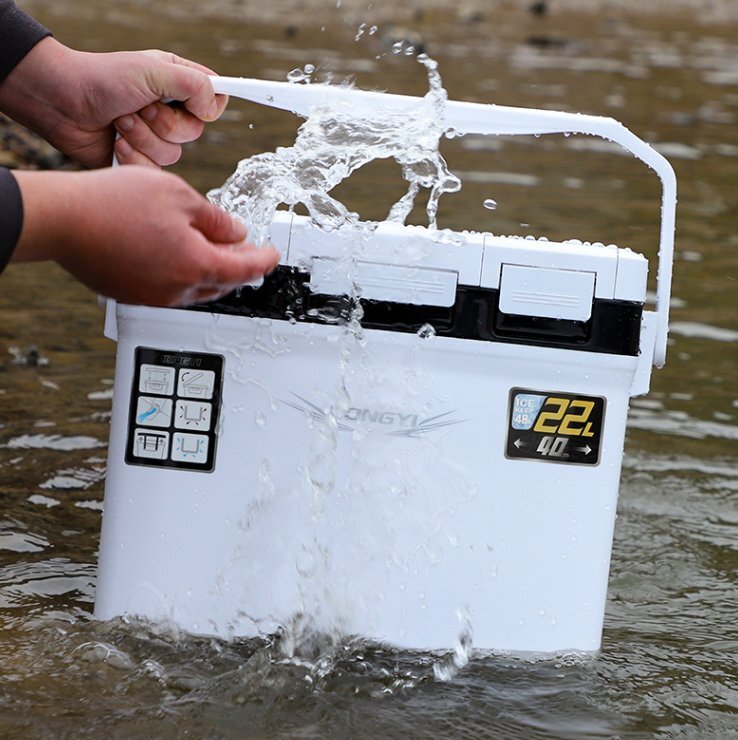 釣り用 クーラーボックス 小型22L ふた両開き 座れる頑丈ボディ 防水 保温保冷 ハンドル/肩ベルト付き 保冷力24-48h ホワイト 收藏