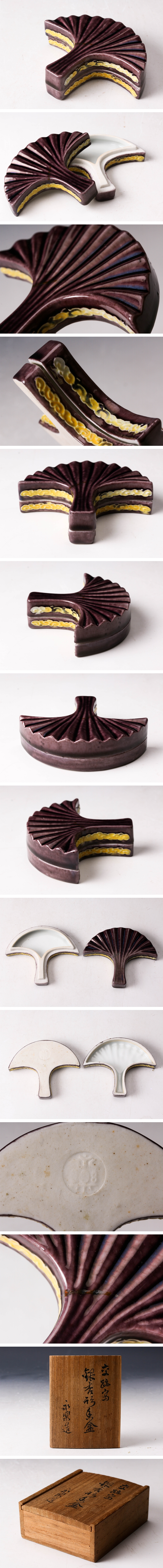 【佳香】十四代 永楽善五郎(得全) 交趾写銀杏形香合 仕立箱 茶道具 本物保証 收藏