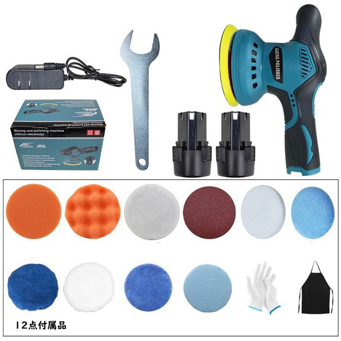 電動ポリッシャー 12V コードレス 8段階変速調整 ポリッシャー 電ポリポリッシャー 充電式ポリッシャー 付属品12点 バッテリー2個 收藏