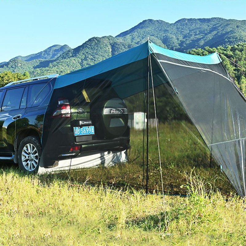 カーサイドタープ 車用タープトランクテント 車と連結 1-6人用 通気のB3メッシュ カーオーニングサンシェルター 虫よけ 簡単設置 キャンプ 收藏