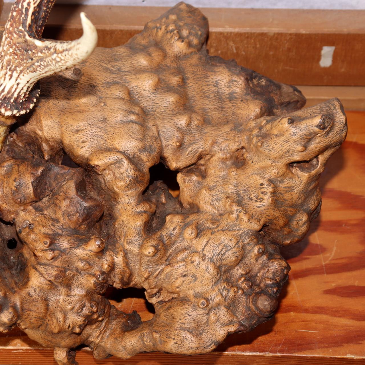 こちらは、木製の鹿角刀掛台です。 自然の瘤木を台座に使用し、上部には鹿角をあしらった重厚な構成が特徴です。 【サイズ】 高さ:約69cm 幅:約64cm 奥行:約33cm 重量:約7.3kg 【状態】 経年による汚れや小傷がございます。 R> ※掲載写真に写っている刀は撮影用であり、商品には付属しません。 ![]() ![]() ![]() ![]() ![]() ![]() 当方は骨董品を中心に取り扱っており、安心してお取引いただけるよう丁寧な対応・梱包を心がけております。 ◆ 商品について