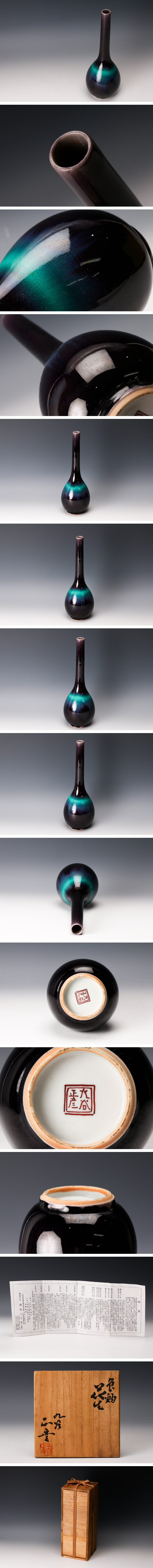 【佳香】人間国宝 三代 徳田八十吉(正彦) 色釉花生 共箱 栞 本物保証 收藏