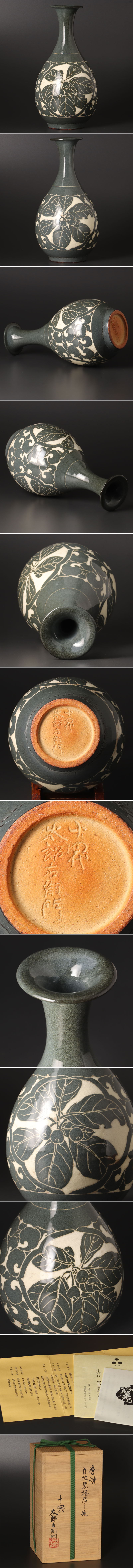 | 【古美味】十四代中里太郎右衛門 唐津白地黒掻落し瓶 茶道具 保証品 |