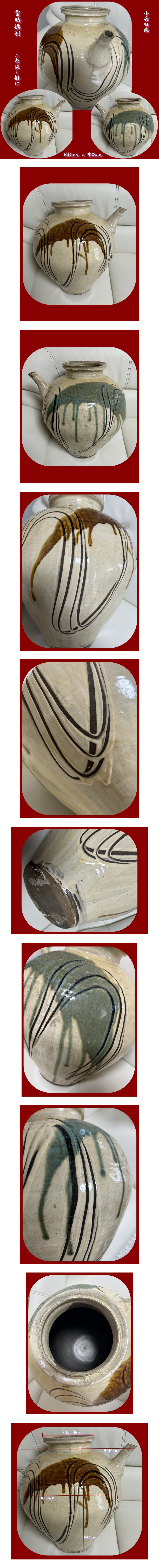★ 雲助徳利・二彩流し掛け・H約45cm / W約38cm・小鹿田焼(おんたやき)大きな徳利、壺・長期保管・レトロ♪ 收藏