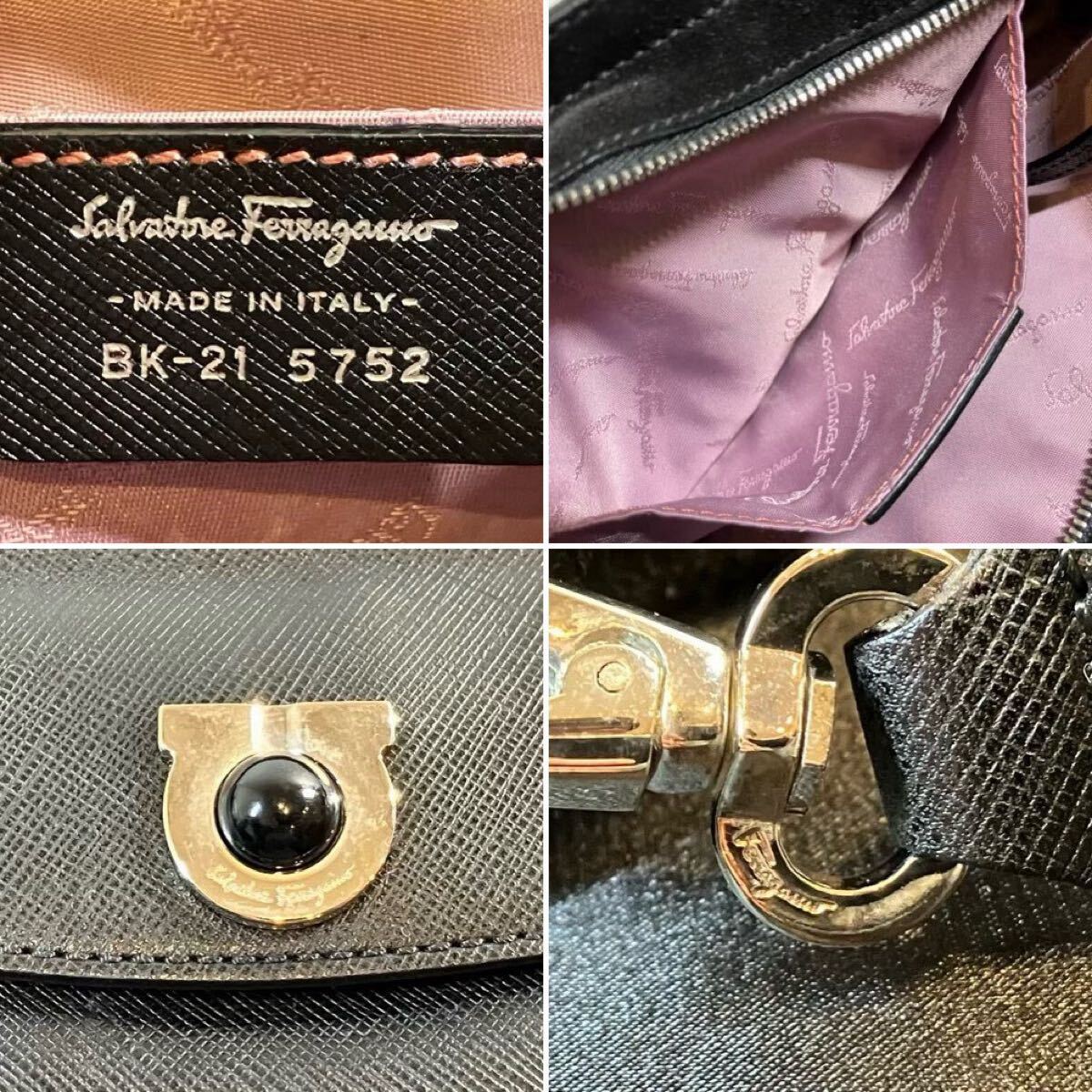 大島1601 Ferragamo フェラガモ スエード ガンチーニ 2way BK-21 美品 ハンドバッグ ショルダーバッグ ブラック 收藏