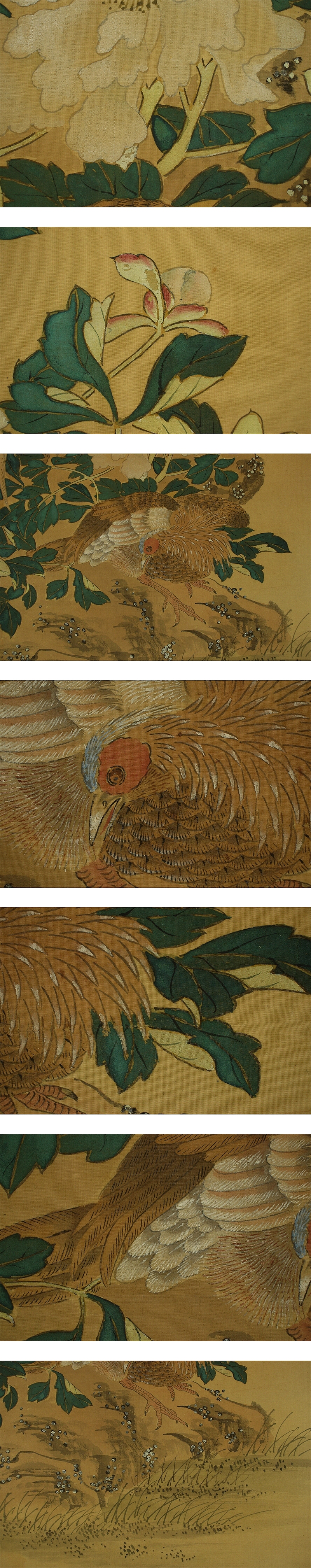| №2008016【模写】岡本秋暉【花鳥図】◆絹本◆合箱◆改装済掛軸 | |