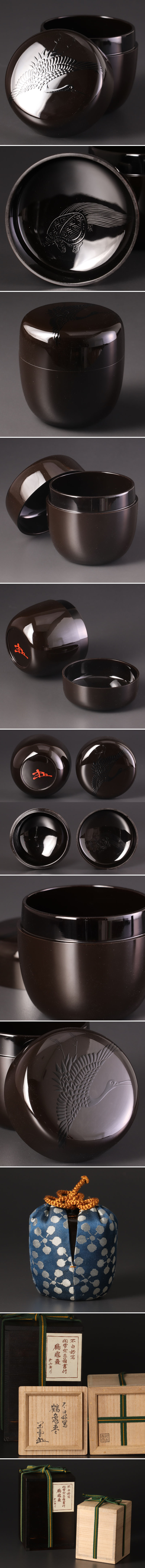 | 【古美味】慶塚修兵衛作『川上閑雪書付』不白好写鶴亀棗 茶道具 保証品 |