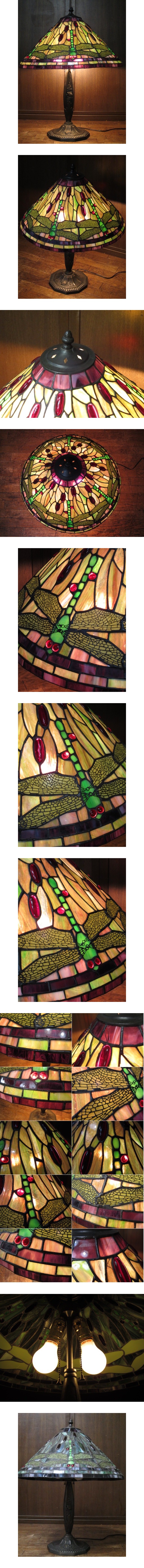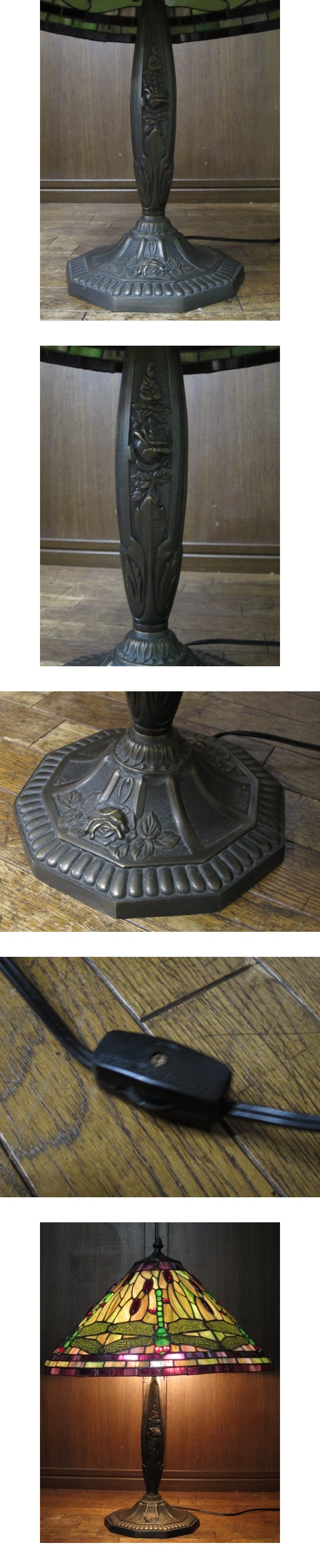 逸品 ステンドグラス ドラゴンフライ 蜻蛉 2灯式 スタンドランプ H65㎝/ティファニーランプ/照明/ガラス工芸/アンティーク 收藏