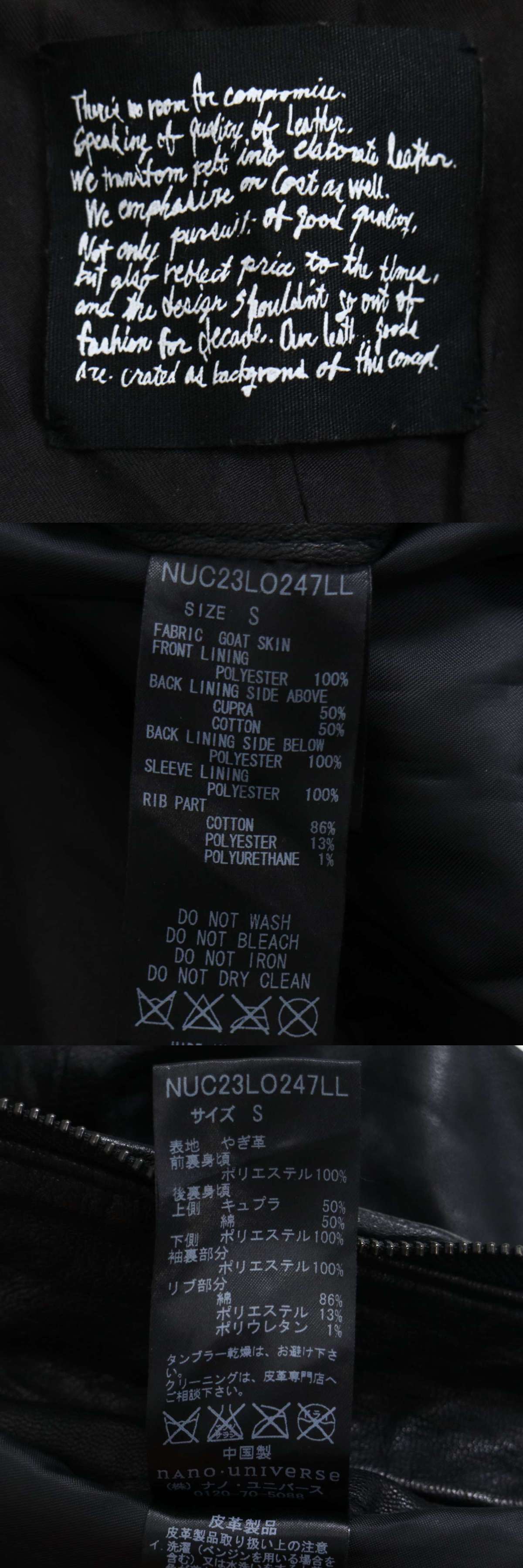 nano universe ナノユニバース 秋冬 山羊革★ ゴートスキン レザー シングル ライダース ジャケット Sz.S メンズ 黒 收藏