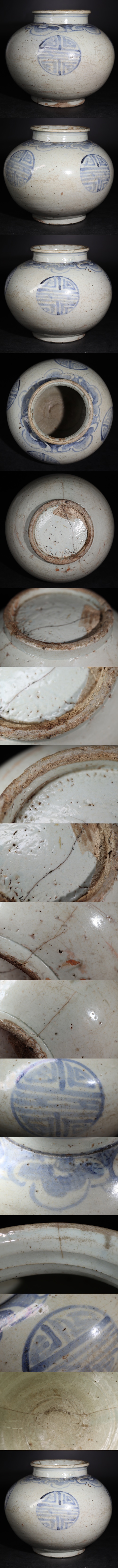 | 時代 李朝 染付 丸壺 / 朝鮮古美術 壺 満月壺 花器 花瓶 煎茶飾 .G3375 |