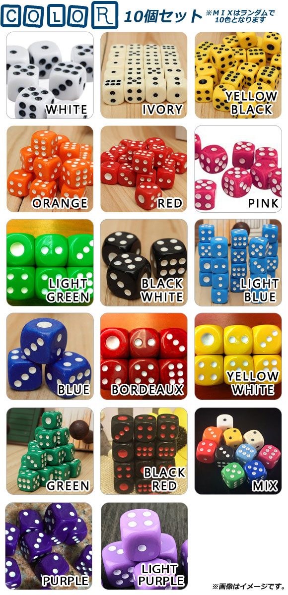 AP ダイス 約16mm ポップカラー 6面 遊びはもちろんインテリアにも♪ 選べる17カラー AP-TH308-16 入数:1セット(10個) 收藏