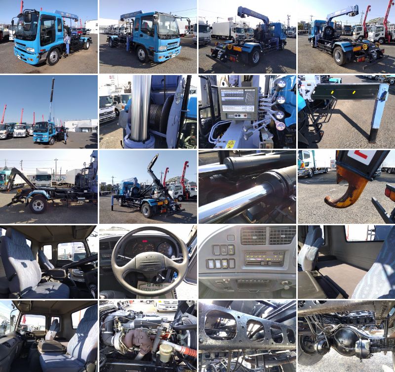 クレーン付コンテナ専用車(フックロール) 上物①:タダノ製 上物①:同年式 3段ブーム ラジコン付(無線) フックイン 2.9t吊り 角足&差し違いアウトリガー 積載6.2t 上物②:極東開発製フックロール 上物②:同年式 ツインホイスト ドラレコ(動作未確認) ETC(動作未確認) ベッド付 走行16.7万km 240馬力 6速ミッション 排ガス適合(各都市乗り入れ&登録可) 増トン車 大型免許対応車 タイヤサイズ:245/70R19.5 総輪スタッドレスタイヤ |