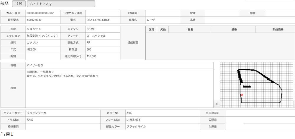 H22年 L175S ムーヴ カラー:X06 右 フロントドア /送料 L/905302 收藏