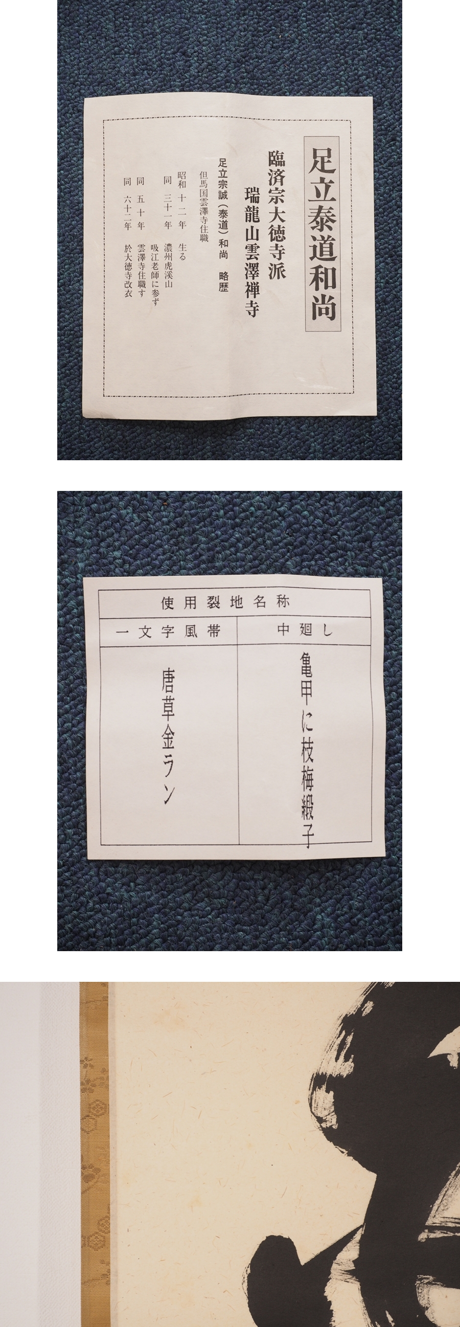 【真筆】【渡鹿庵】[足立泰道] 17200 掛軸 一行書 「白鶴宿老松」 共箱 紙本 臨済宗 大徳寺 在銘 收藏