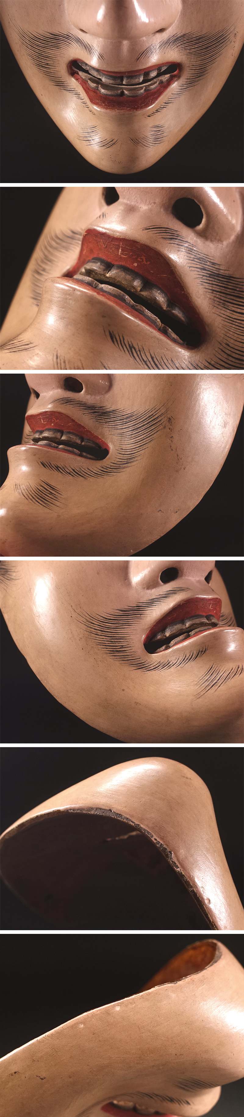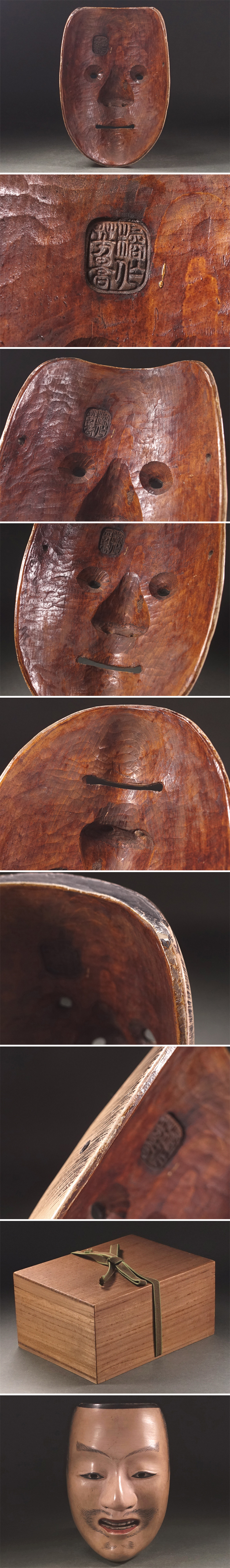 ∇花∇面打師【橘芳高(橘芳暠)】作 木彫彩色能面「平太」 印銘あり 壮年武将を表した雄々しい男面 長澤氏春の大師匠 16 收藏