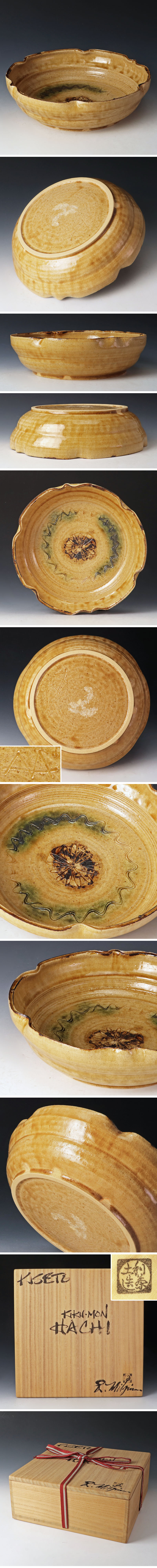 重厚感と温かみを兼ね備えた趣深い鉢です。 ミルグリム氏は、日本伝統の茶陶に魅了され、京都に「利茶土窯(りちゃーどがま)」を構えて40年以上にわたり活動している現代の名工です。 氏は裏千家前家元・千玄室大宗匠から深い信頼を寄せられており、国内外で高い評価を受けています。その作品は「和(日本)」と「洋(アメリカ)」の架け橋とも評され、茶人やコレクターの間でも人気があります。 この鉢は、お茶席での菓子器としてはもちろん、料理を盛り付ける向付や大鉢としても、食卓を格調高く演出してくれる一品です。 ★商品は利茶土ミルグリムの作品である事を保証致します。 |