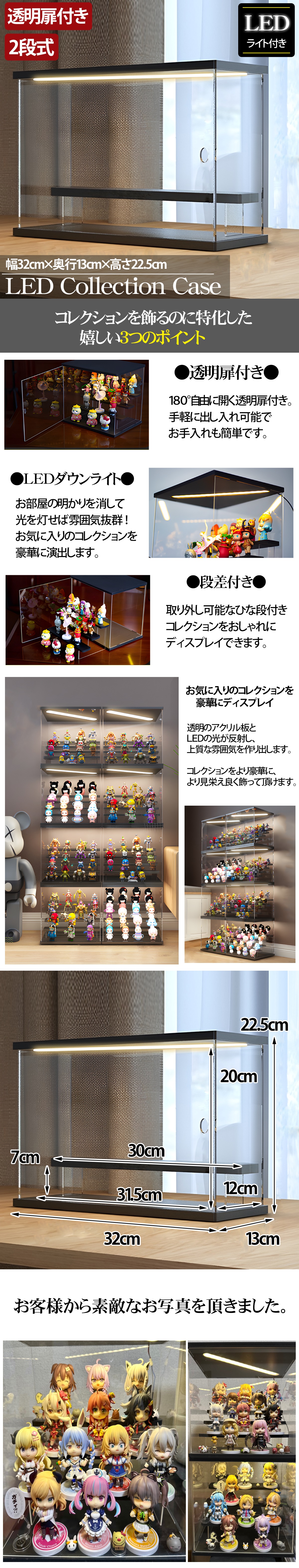 1円 2段 コレクションケース アクリル 幅32cm 段差式 LED 光る アクリルケース コレクションボックス フィギュア プラモデル CB-07BK 收藏