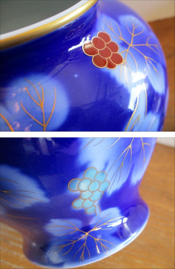【美品】宮内庁御用達 深川製磁 金彩 瑠璃葡萄 花瓶 ぶどう紋様 瑠璃色 青 ブルー 花びん フラワーベース 華道具 茶道具 飾り オブジェ | |||