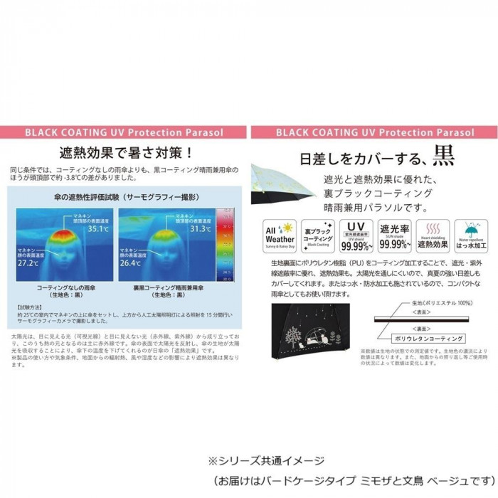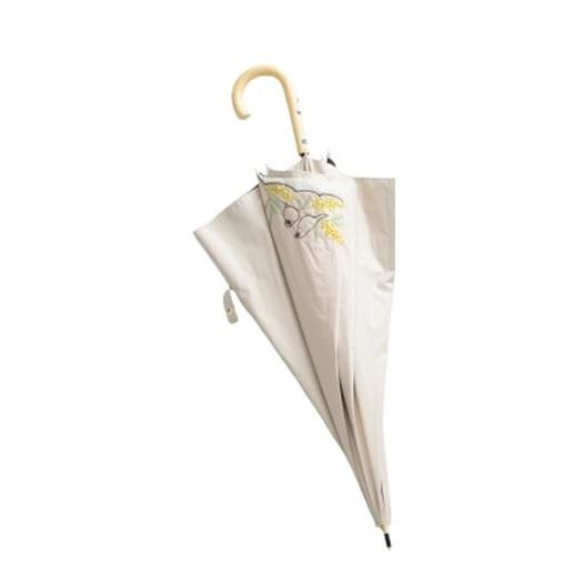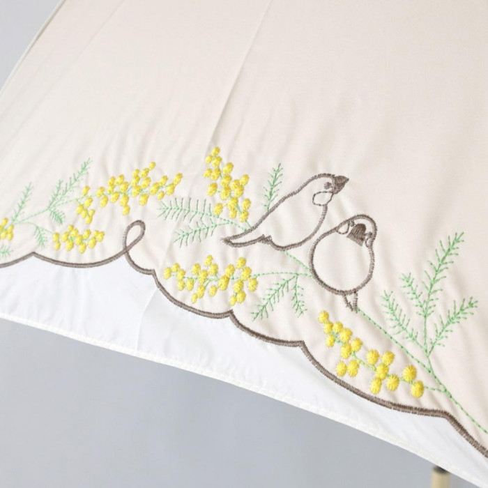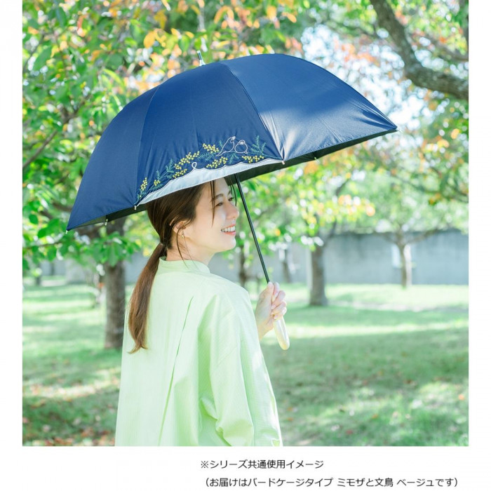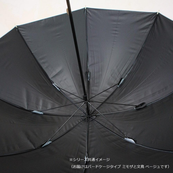 三国 裏黒コーティング晴雨兼用傘 バードゲージタイプ ミモザと文鳥 ベージュ S1519415 收藏