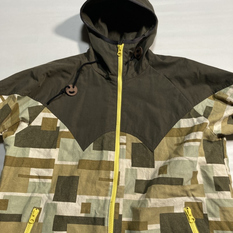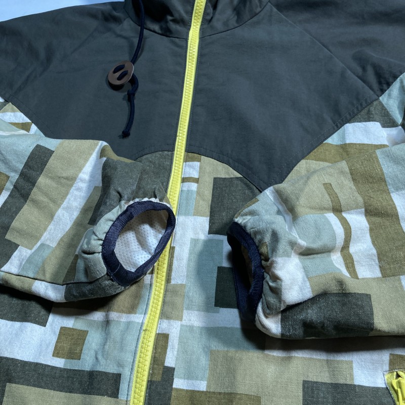 rulezpeeps★ヘンプ混 スクエア幾何学アート迷彩 切替マウンテンパーカー 裏メッシュ 肩ワッペン ジャケット ブルゾン M ルールズピープス