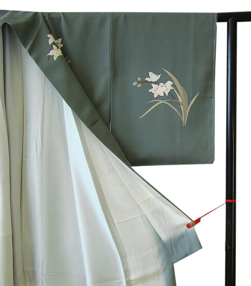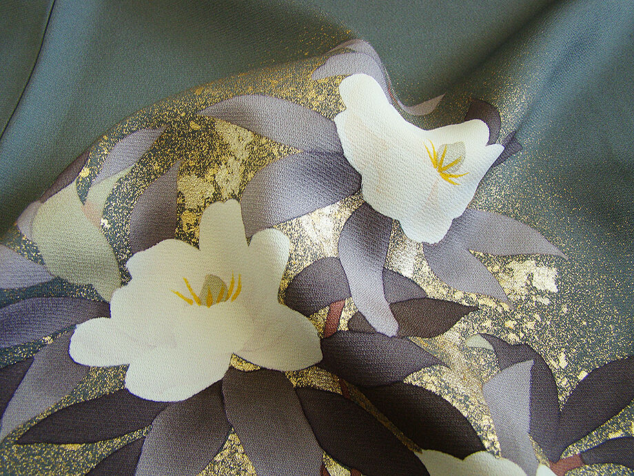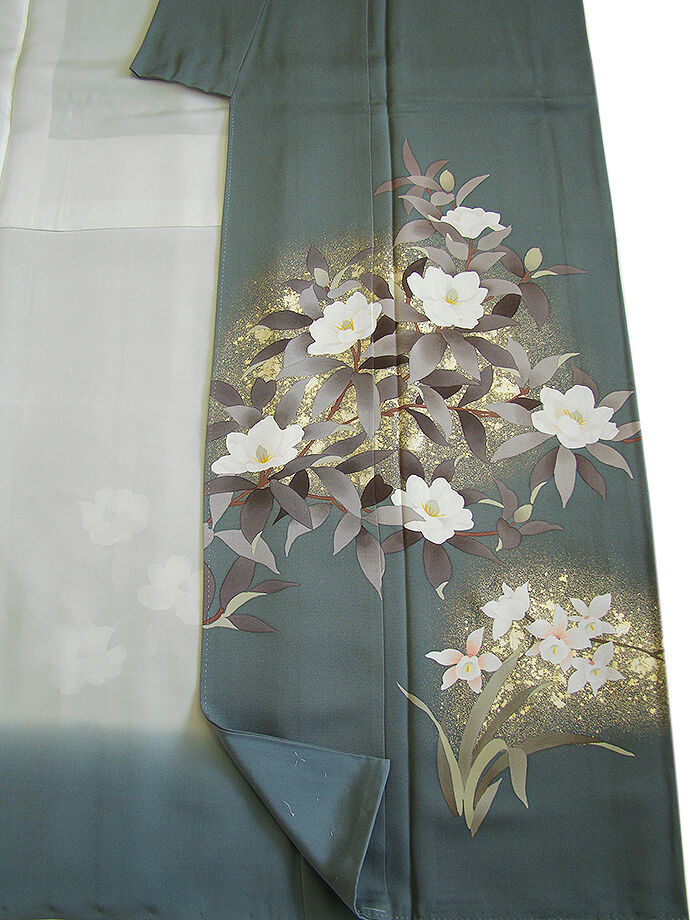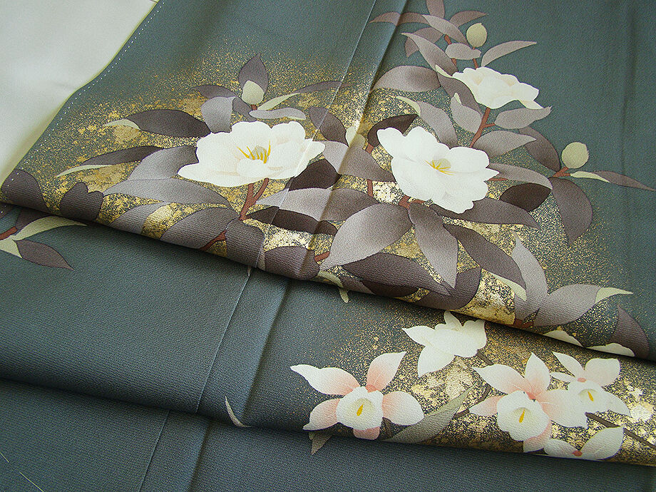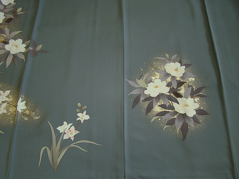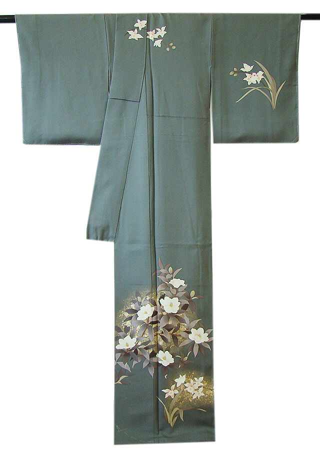 | 商品説明 | こちらのお品は「袷」ですので10月から5月までお召頂ければと思います。 とてもしなやかで柔らかな手触りの着心地良い重めの上質な極上一越地の生地、 渋井い利休鼠色地に花草柄の本加工染に金彩加工仕立て、 気品に満ち溢れた彩りが正統派のお着物として一枚は欲しい逸品の素敵なお着物です。 八掛は湊鼠色(正絹)、幅広い年代の方にお召頂けます。 |