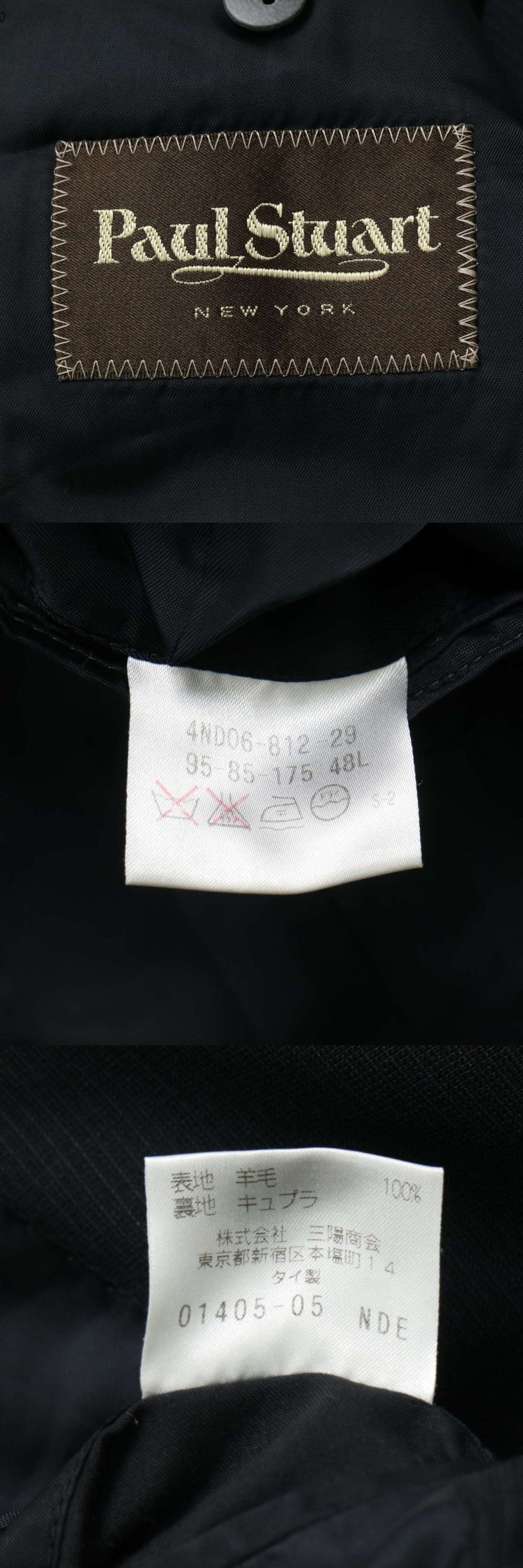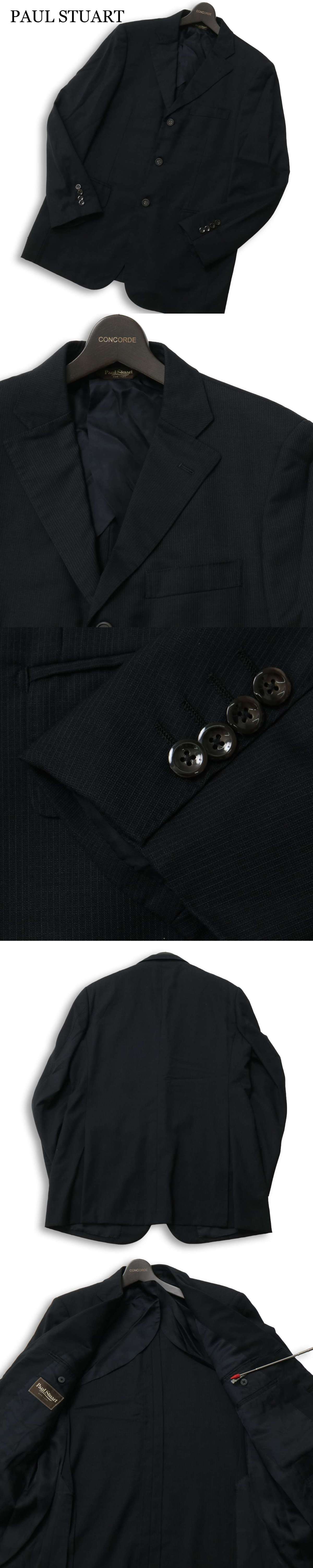 PAUL STUART ポール・スチュアート 春夏 背抜き ウール100% ストライプ★ テーラード ジャケット Sz.48 メンズ 黒 收藏