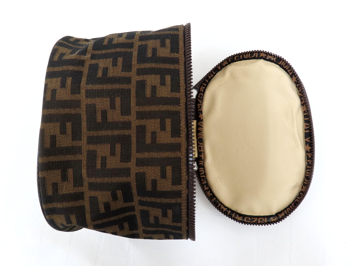 ◆超美品◆FENDI フェンディ◆ズッカ◆ナイロンキャンバス カーフ レザー 本革◆バニティ ハンド バッグ◆茶系 シルバー金具◆A16311 收藏