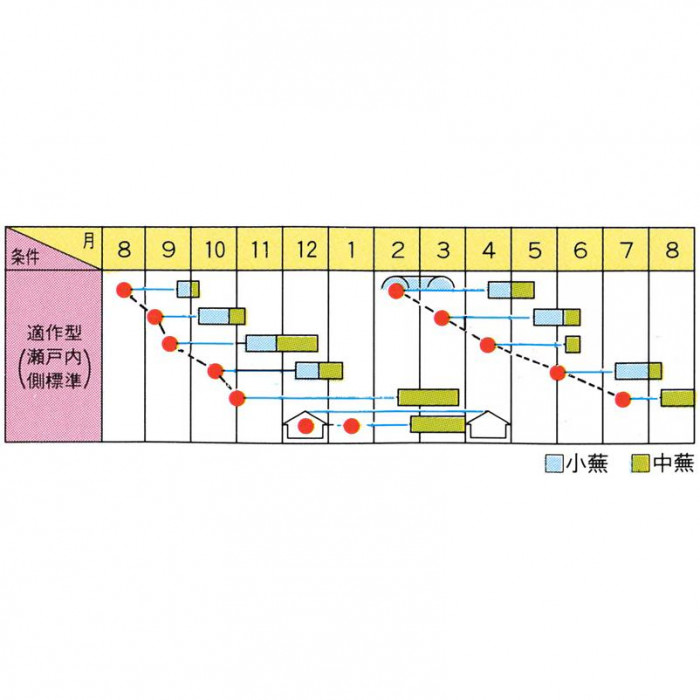 | 生育が極めて旺盛な品種です。低温期でも、葉伸び、根部の肥大が良好。草姿立性、葉は幅の広い琵琶型で、毛茸があります。病害虫に強い超耐病性の四季蒔きのできる小~中蕪です。葉軸がしっかりとして根部とのバランスがとれているので、荷姿が美しく市場性が高いです。根部は、つやのある純白豊円球になります。肉質が緻密で、食味も極上です。首元、尻つまりともに美しくまとまり、揃いが極めて良好です。 ス入りや変形、烈根がほとんどなく、つくり易い四季蒔き品種です。 ※種子は播種後の栽培条件、天候事情により、その結果が異なる場合がございます。万が一、結果不良でも保証はできかねます。 【栽培のポイント】 ・生育旺盛種なので栽培は容易ですが、発芽期から幼苗期にかけて乾燥させないでください。また、間引きを早めに行い、株間を十分に取り、均一に生育させることが大切です。 ・株間を十分に取り、均一に生育させることが大切です。なお春蒔きトンネル栽培において、生育前半期は保温につとめ、後半期に入ってから換気により、葉柄生育や根球肥大を図ってください。 ・生育旺盛なので、N肥は極力控えめにしてください。夏蒔きでは、10アール当たり窒素肥料5kg程度が良いです。冬どり栽培では、N肥、P肥、K肥それぞれ15kg、苦土石灰100kg程度を標準に、畑の肥沃度によって加減してください。また、低温期栽培では元肥を重点にしてください。 ・堆肥は完熟堆肥を早めに施して土になじませるとともに、肥料は元肥主体で播種の1週間前までに苦土石灰と一緒に散布、ロータリーで耕してください。播種後35日ぐらいから小蕪として随時収穫できます。 |