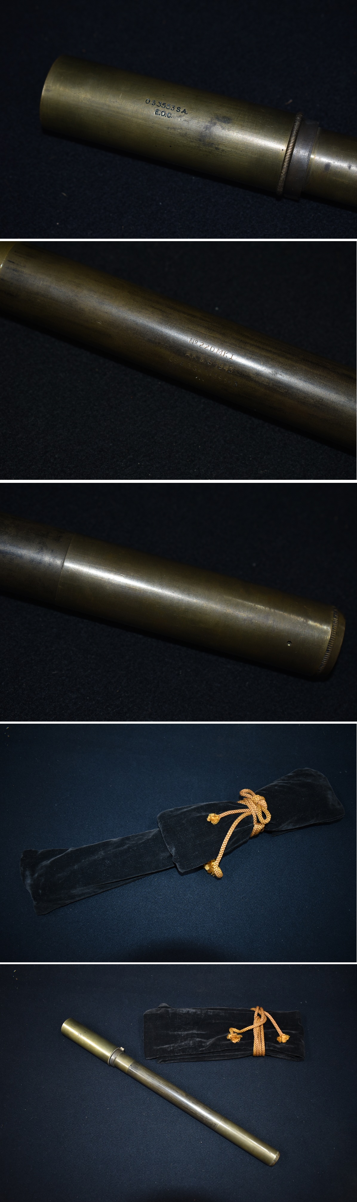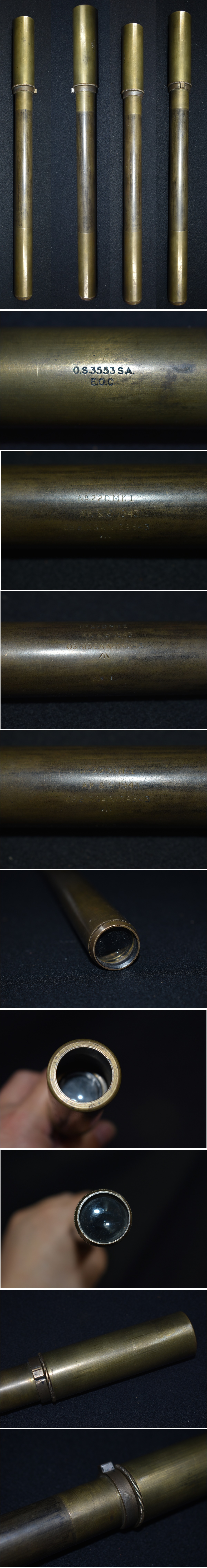 ご覧頂きありがとうございます。今回出品する品は写真のスコープです。 軍物コレクター様の一品です。大変珍しい1940年代のイギリス軍用ライフルスコープです。 主に№4MK1(T)ライフルなどの狙撃銃に搭載されて使われたスコープです。 当時物でレプリカではございません。全体的に真鍮で作られ、胴体には刻印があります。 両端にレンズが入っていて、覗きますと黒字の十字照準があります。 刻印は、O.S.3553.SA E.O.C №22DMI AK&1943 OS813G.A №39543 大戦から冷戦まで使用された Lee Enfield No.4 MkⅠ (エン・フィールド) リー・エンフィールド(Lee-Enfield)は、イギリスで開発されたボルトアクションライフルである。 1895年の採用以降、長年に渡りイギリス軍の制式小銃として配備されていた。 リー・エンフィールドという名称は、設計者であるジェームス・パリス・リー(英語版)(James Pa ris Lee)の姓と、王立小火器工廠がある地名のエンフィールドに由来する。 1888年に制式採用されたリー・メトフォード小銃の改良型として開発されたもので、1895年から195 8年までの60余年間にわたり度重なる改良を加えられ、外見・仕様・弾薬を変えながら、イギリス軍 以外にも大英帝国およびイギリスの植民地及びコモンウェルスの諸国の軍隊や警察において広く用い られた。 第二次世界大戦では日本軍が緒戦で大量に鹵獲し、インド国民軍やビルマ防衛軍の装備として利用した。 イギリス軍では1958年にL1A1に制式小銃の座を譲った後も1960年代初頭まで使用されており、今でも、 インドの各州警察など一部のコモンウェルス諸国・元植民地の治安維持部隊等では現役である。 現在でも人気は高く、狩猟用や競技用の銃として愛好家は多い。 総生産量は1千7百万丁を超えると推定されている。 Rifle No. 4 Mk I 「豚を突付く棒」とあだ名されたスパイクバヨネットが装着された状態。バヨネット には円柱状の鞘もかぶせられている No.4を手にドリルを行うインド空軍の儀仗隊 1930年代末になり新しい小銃への要求が高まり、1939年に採用されたのがこのRifle No. 4 Mk I(No.4 M k I)である。1939年に採用されたが、41年まで大量生産される事はなかった。 このRifle No. 4 Mk IはRifle No.1 MkVIに類似している。しかし、最も大きな違いは、より簡単に大量 生産できるようになった点である。一目で分かる外見上の違いは、SMLEとは異なって、ハンドガードから 銃身が飛び出ている点だろう。 No.4 Mk IはRifle No.1 MkIIIに比べ非常に重たい。これは銃全体を強化し、命中精度を上げる為に肉厚 で重い銃身を採用したからである。 新しい銃剣もこの銃の開発に平行して開発され、スパイク・バヨネットと呼ばれる銃剣が取り入れられた これは日本語訳では“銃「剣」”という名前だが、本質的には先端が尖った棒と銃にしっかり固定でき るようにしたソケットを一体化したものであり、兵士からは「豚を突付く棒」だとあだ名された。当初は 全体が一体鍛造され、剣部は断面形が三角形だったが、先端をマイナスドライバーのように削った丸棒に 簡略化された。さらに製造の簡便化を図って、ソケットと剣部が別部品に分けられた。第二次世界大戦が 終盤を迎える頃、銃への装着方法は同じだが、刃が付いた一般的なナイフ形の銃剣が開発・支給され、ス パイク・バヨネットと同じくらいの数が使われた。 狙撃銃タイプ Rifle No. 4 Mk I(T)を持つカナダ軍兵士 第一次・二次世界大戦と朝鮮戦争の間を通して、数多くのリー・エンフィールド小銃が狙撃銃に改造 された。 第二次世界大戦中は新たに狙撃銃を設計せず、No.4 Mk Iの生産ラインから精度の良いものを選び、照 門を取り外し、木製のチークパッド(頬当て)と"No.32 3.5倍スナイパースコープ(狙撃眼鏡)"を取り 付けるなどの改造を施すことで狙撃銃を製作した。この独特な"No.32 3.5倍スコープ"は、1942年にMk 1が、43年にMk 2が、44年にはMk 3(4倍)が採用され、年を追うごとに進歩していった。その後、No. 32 Mk 3スコープには新たに“L1A1”という名称が与えられている。 それらの改造を施したNo.4 Mk Iに、軍はNo.4 Mk I (T)という名称を与えた。イギリスで有名なスポー ツ用銃製作会社であるHoland and Holandで、数多くのNo.4 Mk Iが狙撃銃へと改造されていった。 これらの狙撃銃は、オリジナルの状態で1960年代までの多くの紛争で用いられることとなったが、7.62 mm NATO弾を使用するように改修されたタイプであるL42A1は1982年のフォークランド紛争でも用いられた。 サイズ 長さ約38.3センチ 発送は、ゆうパックの着払いです。 あとは写真と画像を見て判断してください。質問はわかる範囲でお答えしますので、入札前にお願い いたします。 |