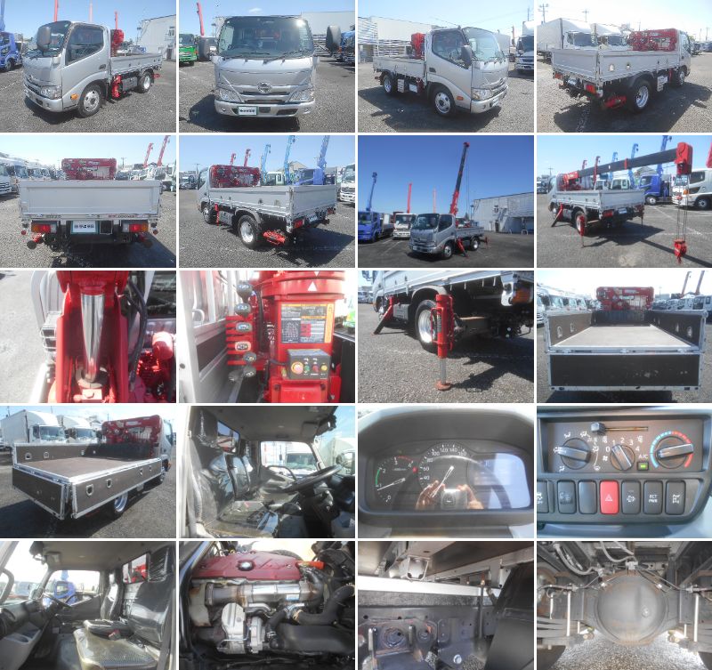 簡易クレーン付平ボディ 上物:古河ユニック製 上物同年式 4段ブーム ラジコン付(無線) フックイン 2.2t吊 リアジャッキ付 積載3t 荷台寸法:250×160×37 荷台床:木張り アオリ開閉サポート ロープ穴 横ネタ鉄製 ルームミラー切り替え式バックモニター 4ナンバー AT車(2ペダル) 準中型(7.5t未満)免許対応車 排ガス適合(各都市登録&乗り入れ可) タイヤサイズ:205/75R16 |