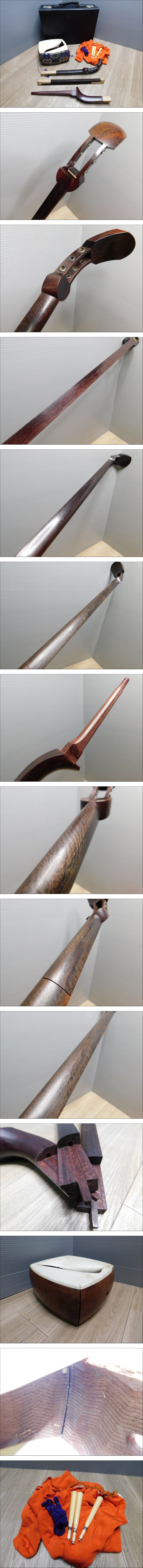 【細棹高級三味線】びっちり透かしトチあり 紅木 金細(金ホゾ)2本溝(二段溝) K18刻印あり 子持ち綾杉胴 長唄 小唄/M581 收藏