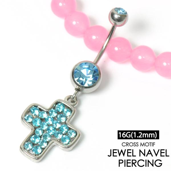 ヘソピアス クロス(十字架) ラインストーン 16G(1.2mm)アクアカラー ジュエル バナナバーベル ロブ ボディピアス 16ゲージ h543-2 ┃ 收藏