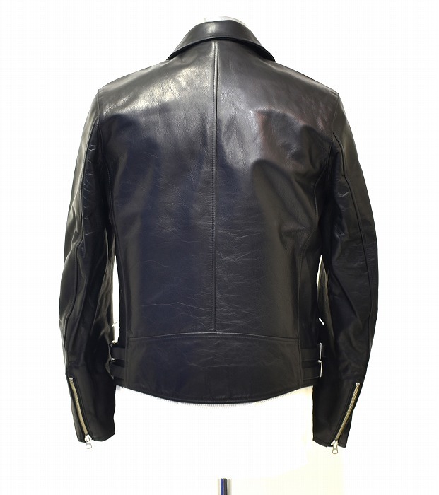 ・素材:表地:牛革 カウレザー /裏地:キュプラ100% ・カラー:ブラック ・サイズ:L 実寸 肩幅 約43cm・身幅 約51cm・着丈 約60cm・袖丈 約61.5cm (多少の誤差はお許しください) 質感高いカウレザーを使用したベーシックな形のダブルライダース。 本格的なライダースよりもわずかに薄手でタウンユースに適した中厚地の牛革が使用されています。 シルエットはややスリムながら窮屈なフィット感ではなく、適度にインナーも着込むことが可能で、シルエットも秀逸のパターンメイキングです。 ジップは老舗UNIVERSAL社製を使用。 質感の良さが際立ち、着込むごとに風合いが増していく楽しみもあります。 新品 定価¥165000(税込) 日本製 かなりお値打ちだと思います。この機会にぜひ!。 他にもいろいろ出品しています。 管理番号:212211MY-088948 N8上★ PD202402-3000 |