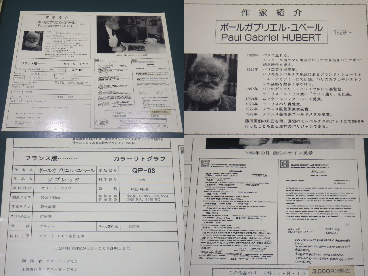 h4L082Z0.1 ポール・ガブリエル・ユベール 「ジゴレッタ」 250/300カラーリトグラフ 直筆サイン 額装 收藏