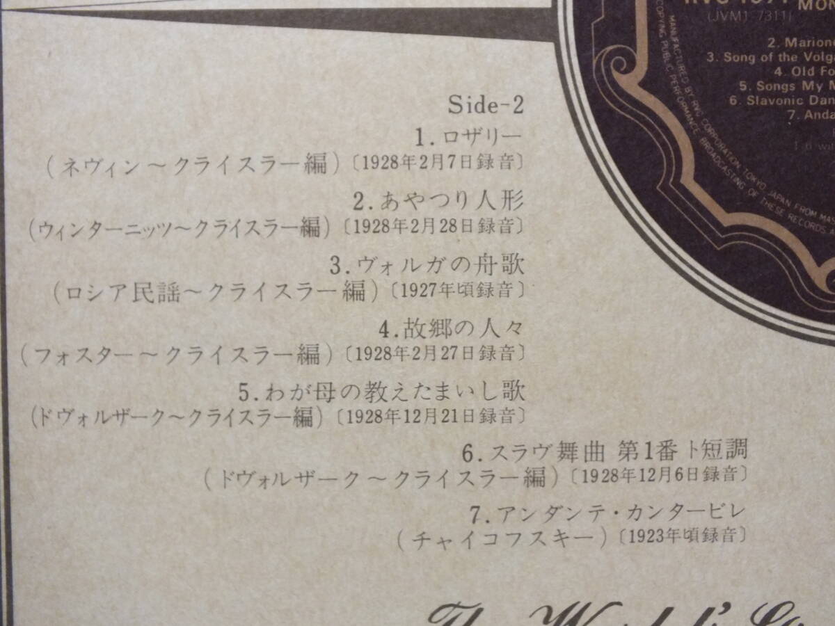 LP RVC 1571 【ヴァイオリン】フリッツ・クライスラー クライスラー愛奏曲集 スラヴ舞曲 故郷の人々 【8商品以上同梱で送料無料】 收藏