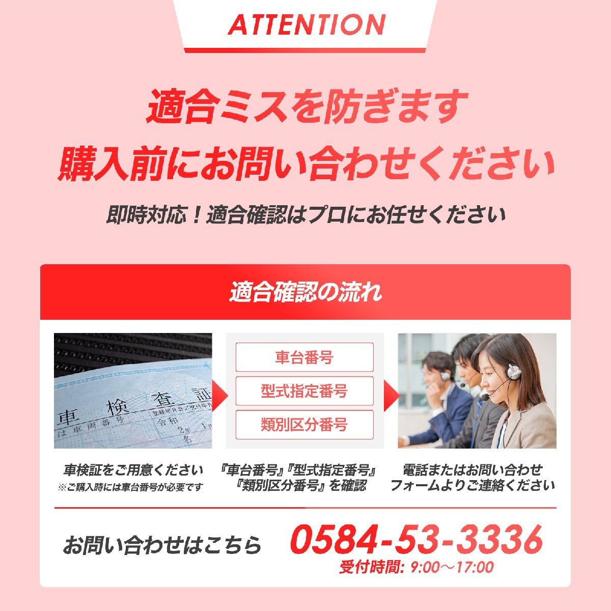 適合が不明な場合は、ご注文前にお問い合わせフォームより車台番号をご連絡ください。