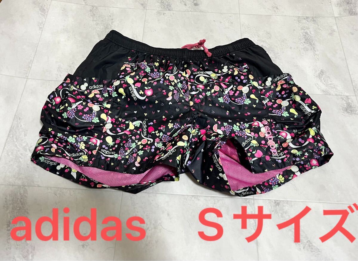 美品!adidas アディダス ショートパンツ 小花柄 フラワー 花柄 総柄 ブラック Sサイズ ランニング 收藏